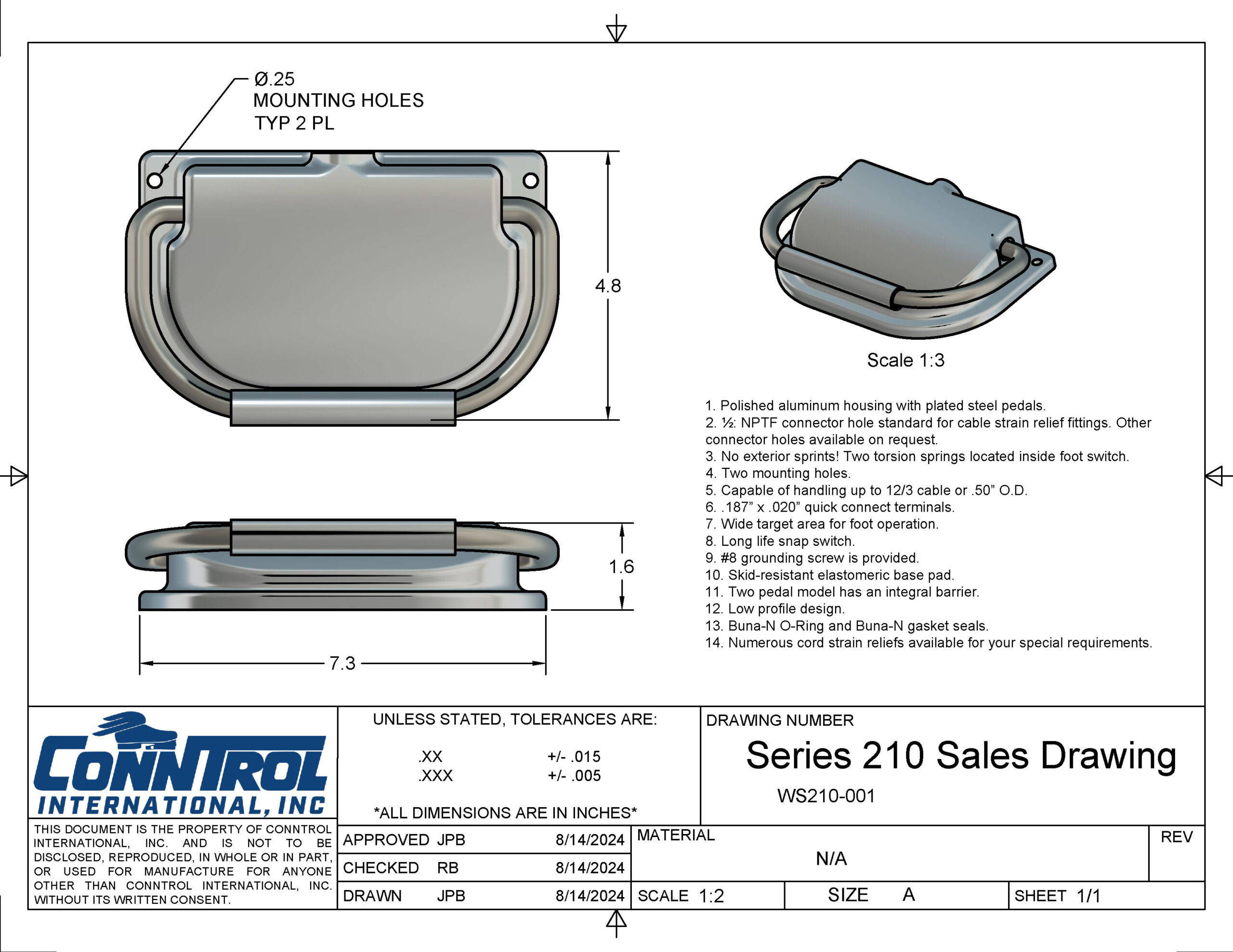A low-profile foot switch featuring a durable aluminum housing with ingress protection.